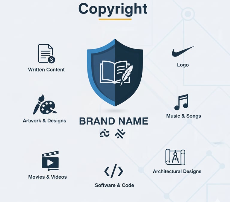We help creators, designers, and businesses protect their original artistic and literary works, including written content, artwork, music, films, software, photographs, architectural drawings, and digital creations. Copyright protection preserves your ownership and prevents unauthorized copying, distribution, or misuse.