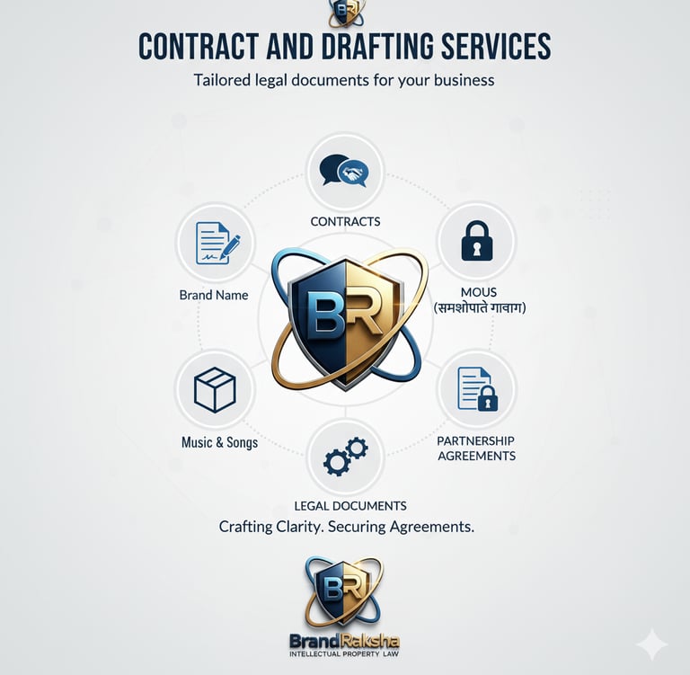 BrandRaksha’s contract drafting services are designed to empower businesses and individuals with clear, enforceable legal agreements tailored to their needs. Every contract—whether a business partnership, Memorandum of Understanding, NDA, or complex commercial arrangement—is drafted with meticulous attention to detail, ensuring that all terms are legally sound, customized to client requirements, and transparent for all parties. By blending industry expertise with practical legal insight, BrandRaksha provides documents that protect interests, reduce risk, and facilitate seamless transactions, helping clients navigate today’s dynamic marketplace with confidence and peace of mind.